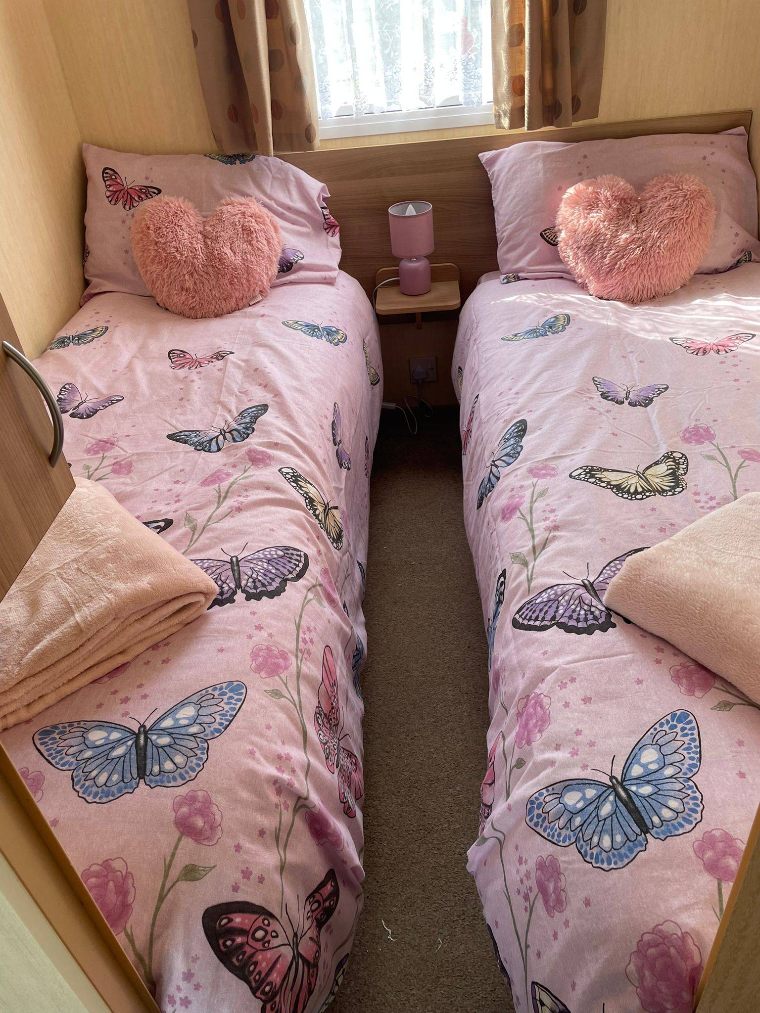 The caravan includes well arranged bedrooms with comfortable beds and smart storage, plus additional sleeping space in the lounge area. A modern bathroom and practical facilities make longer stays easy and stress free.